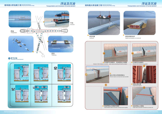 沉管浮云沉放對接過程示意圖(中交聯(lián)合體提供) 南方日報訊(記者/向松陽 高國輝 攝影/王榮 發(fā)自珠海)自首節(jié)沉管5月2日從珠海桂山島浮運出塢,港珠澳大橋海底隧道首次“海底之吻”拉開序幕。經(jīng)過4個晝夜的奮戰(zhàn),5日晚10點(可能推遲,具體時間到時我再和向松陽核實),E1沉管成功實現(xiàn)與西人工島暗埋段的對接。這是國內(nèi)首個實現(xiàn)外海深水安裝的沉管工程,也是迄今為止世界上規(guī)模最大、最具挑戰(zhàn)的工程。 5日下午,記者在西人工島島頭看到,完成系泊和絞移的E1沉管停留在離暗埋段5米的位置。據(jù)悉,首節(jié)沉管于3日凌晨在8艘拖輪的拖運下抵達西人工島島頭,并于4日早上6點多完成絞移。不過,在4日進行的沉放實驗中,因島頭的水流復雜形成漩渦帶來泥沙淤積,海底基床出現(xiàn)了一定高差偏差!白罡哌_到5-10公分,尾部泥沙較少,只高出1公分左右!睄u隧工程項目副總工程師尹海卿說,這也是“沉管下不去”的原因所在。 這種狀況出乎工程師們的預料,據(jù)尹海卿介紹,考慮到島頭水流復雜,他們于4月30日進行過測試,當時的結(jié)果顯示滿足施工要求。5月4日完成檢查并進行分析后,施工人員抽空沉管內(nèi)的水,讓沉管重新浮上來,之后10多名潛水員們開始了泥沙清理工作。“因為錨和纜繩都弄好了,沉管整個退出去的話要花10個小時,只能由潛水員去做!敝磷蛉障挛2點,全部泥沙清理工作已經(jīng)完成,這一過程中,平均每個潛水員要在水下作業(yè)2-3個小時。 昨日下午4點許,施工人員通過沉放駁上的操縱系統(tǒng),往沉管內(nèi)的壓載水箱注水,E1沉管開始緩慢下沉,并引導沉管前端的導向桿落入暗埋段上的導向托架內(nèi)。整個過程需要保持管體2.996%的縱坡,最后再向前平移,通過吊繩使管節(jié)以勻速、平穩(wěn)的速度落在碎石墊層上,完成“著床”。 當沉管下沉到基床后,通過拉合千斤頂,使得兩個管節(jié)基本對準位置,這時要將對接處的海水抽掉。“到晚上8點潮水最高的時候,是進行水力壓接的最佳時機!币G湔f,高潮水對管節(jié)壓載的質(zhì)量更好,“就好像把蓋子蓋得更緊一樣。”據(jù)了解,在兩個管節(jié)的橫截面周圍,安裝了巨大的橡膠止水帶,理論上的GINA止水帶壓縮量是10幾公分。潛水員水下檢查確認后,向沉管水箱加入壓載,使其負浮力達到沉管重量的5%,保持沉管一定的抗浮安全系數(shù),最后打開沉管間的入孔門進行測量。 尹海卿介紹,沉管對接要控制3個誤差,“沉管對接的精確度要求非常高,兩邊橫向偏差要控制在在2厘米之內(nèi),縱向偏差3.5厘米之內(nèi),軸線偏差控制在5厘米之內(nèi)! 至晚上10時(可能推遲),經(jīng)過海水水壓對接后,首節(jié)沉管順利完成了對接。 沉管對接關鍵步驟: 1.沉管出塢 2.沉管浮運 3.系泊 4.絞移 5.管節(jié)沉放 6.千斤頂拉合 7.高潮位水力壓接 8.貫通測量 9.管內(nèi)精調(diào) 10.安裝船撤離 11.鎖定回填 |
