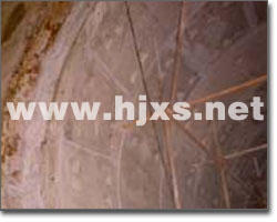 4.1.2基面處理 基面處理采用兩種方法。明顯滲漏水部位采用鑿孔注漿堵水(注漿材料為微分子納米混合防水堵漏材料或水溶性聚氨酯),其他部位滲水采取快凝水泥封堵?炷郤H外滲劑與425#普通硅酸鹽水泥按比例混合,或用雙快水泥。然后進(jìn)行封堵。水泥凝結(jié)時間調(diào)節(jié)在2min左右。