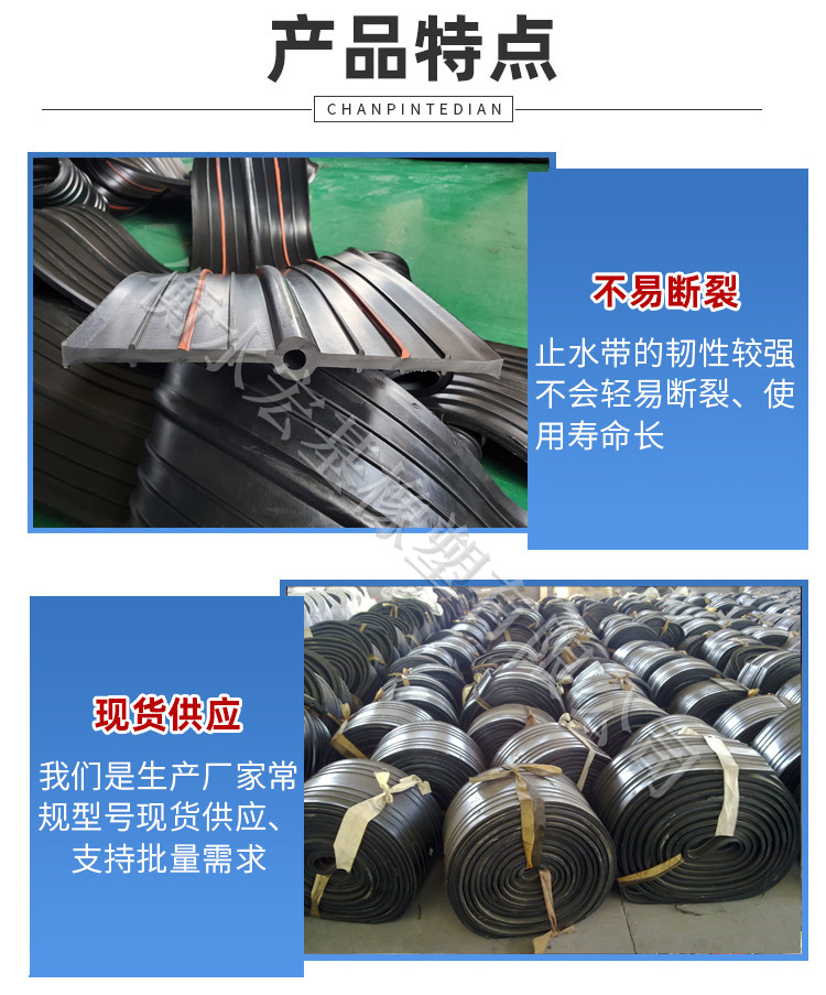 遇水膨脹止水帶除具有普通橡膠止水帶的性能外,其主要特點(diǎn)是內(nèi)防水線采用了具有遇水膨脹工程的特殊橡膠制成。這樣在膨脹橡膠遇水膨脹后增強(qiáng)了止水帶和構(gòu)筑物的緊密度,使防水、止水效果更好。因此遇解決了長期困擾人們的環(huán)繞滲漏問題。執(zhí)行GB18173.3-2014標(biāo)準(zhǔn)。